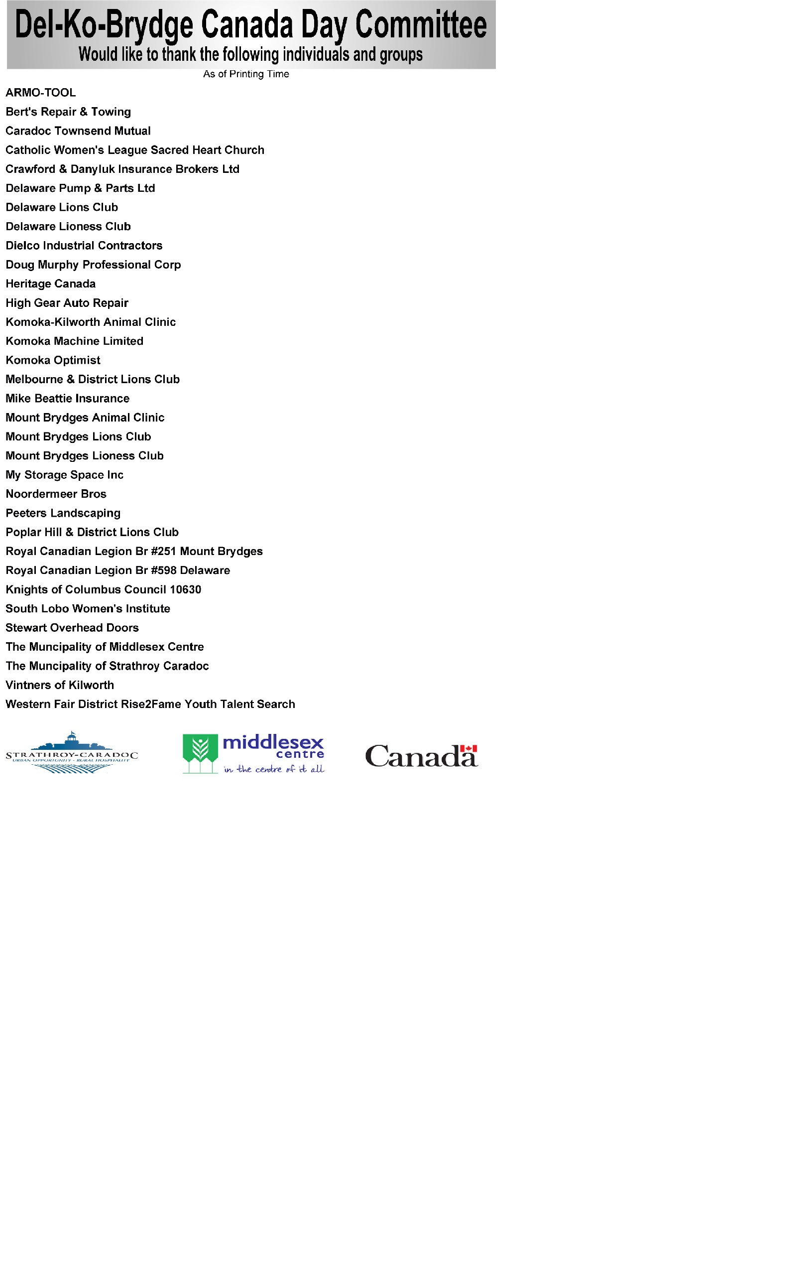 A Cooperation by The People of The Villages of Delaware, Komoka, Mount Brydges and Area