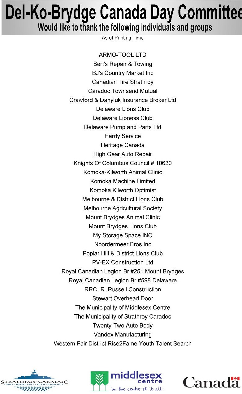 A Cooperation by The People of The Villages of Delaware, Komoka, Mount Brydges and Area